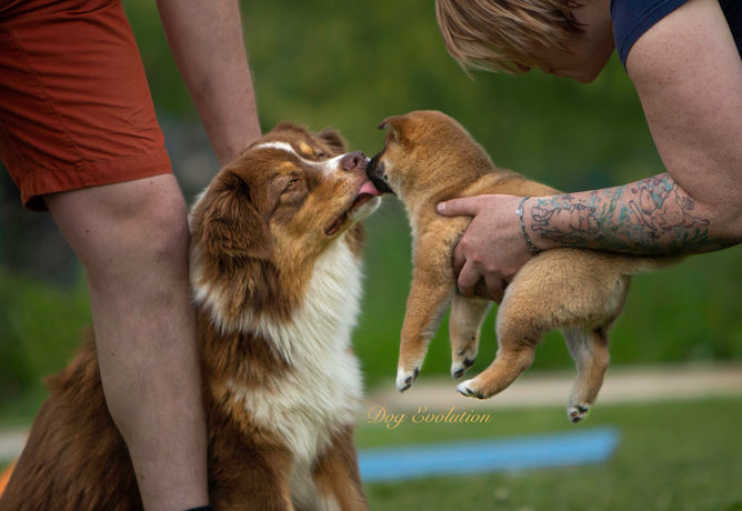 Il n'y a pas plus gentille qu'elle, elle préfère partir dans le jeu plutôt que d'être dans la confrontation. Elle nous accompagne également lors de nos cours chiots où elle reste très attentive à moi et aux apprentissages malgré les stimulations. Elle a également déjà aidé des chiens adultes ayant besoin de codes canins, elle est toujours très propre dans sa communication canine.